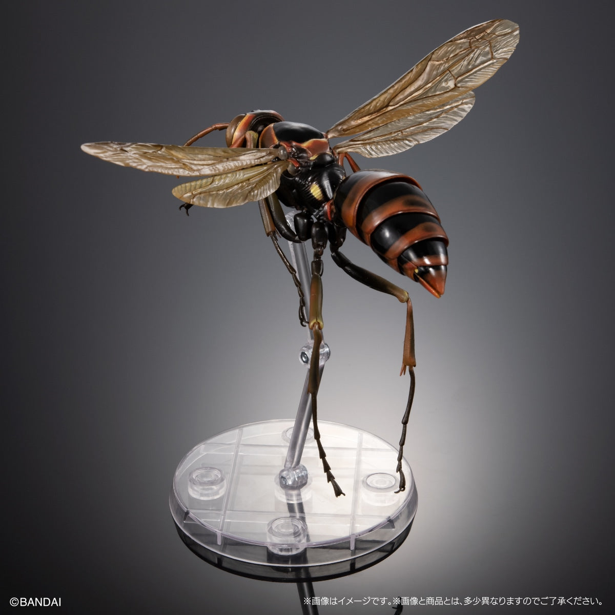 The paper wasp, flying gracefully and slowly with its long legs hanging down, is recreated with a total length of approximately 160mm and 42 movable parts. The Gashapon Online version also comes with a display stand that allows you to display it in its characteristic flying position.